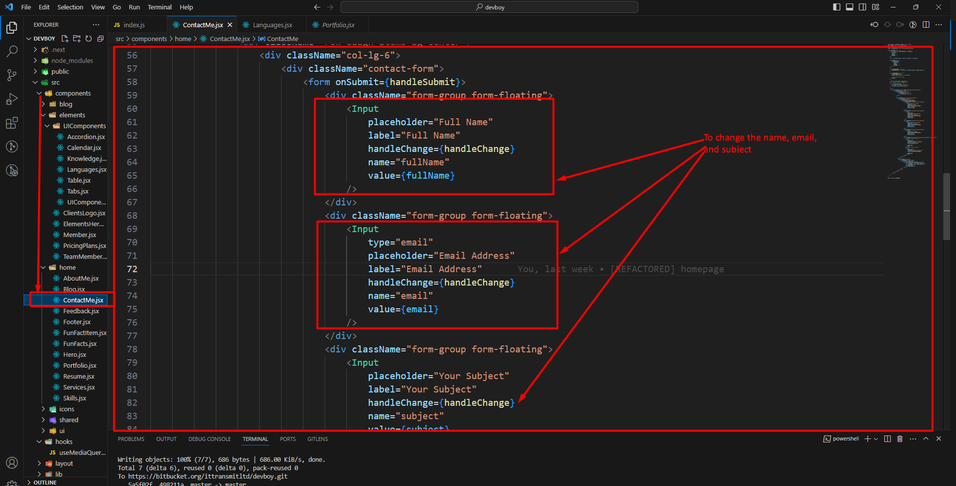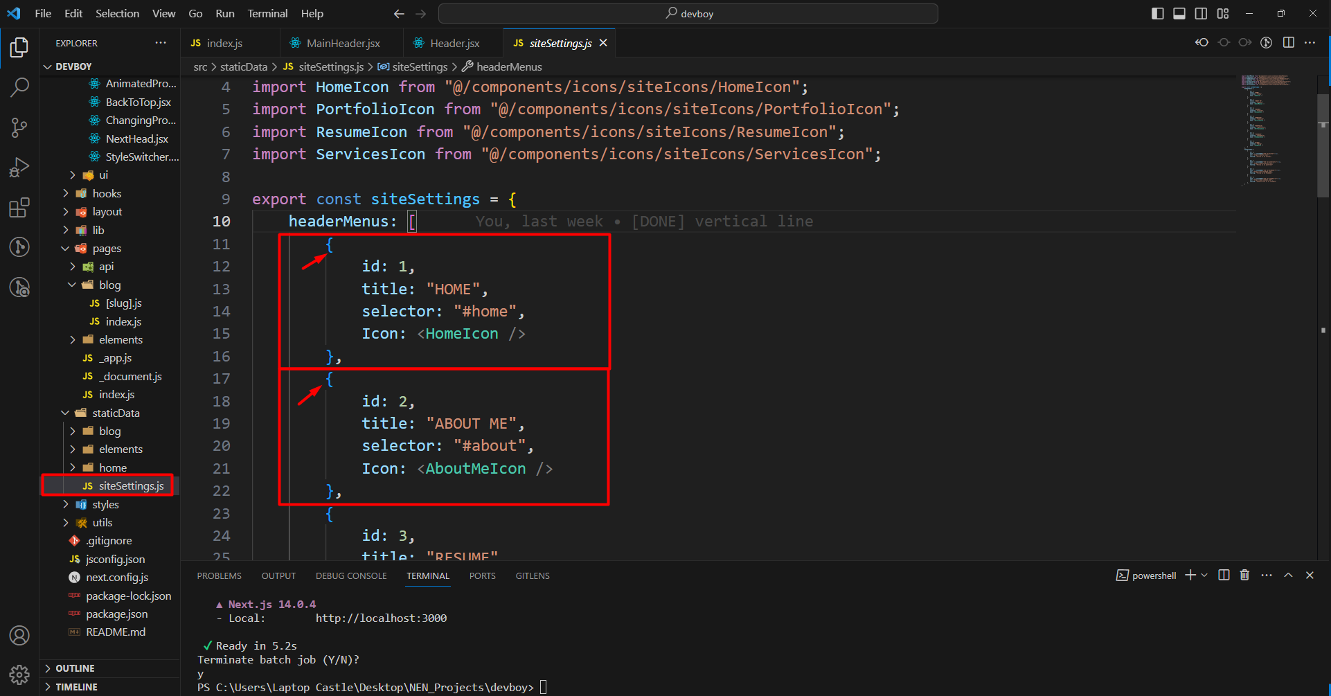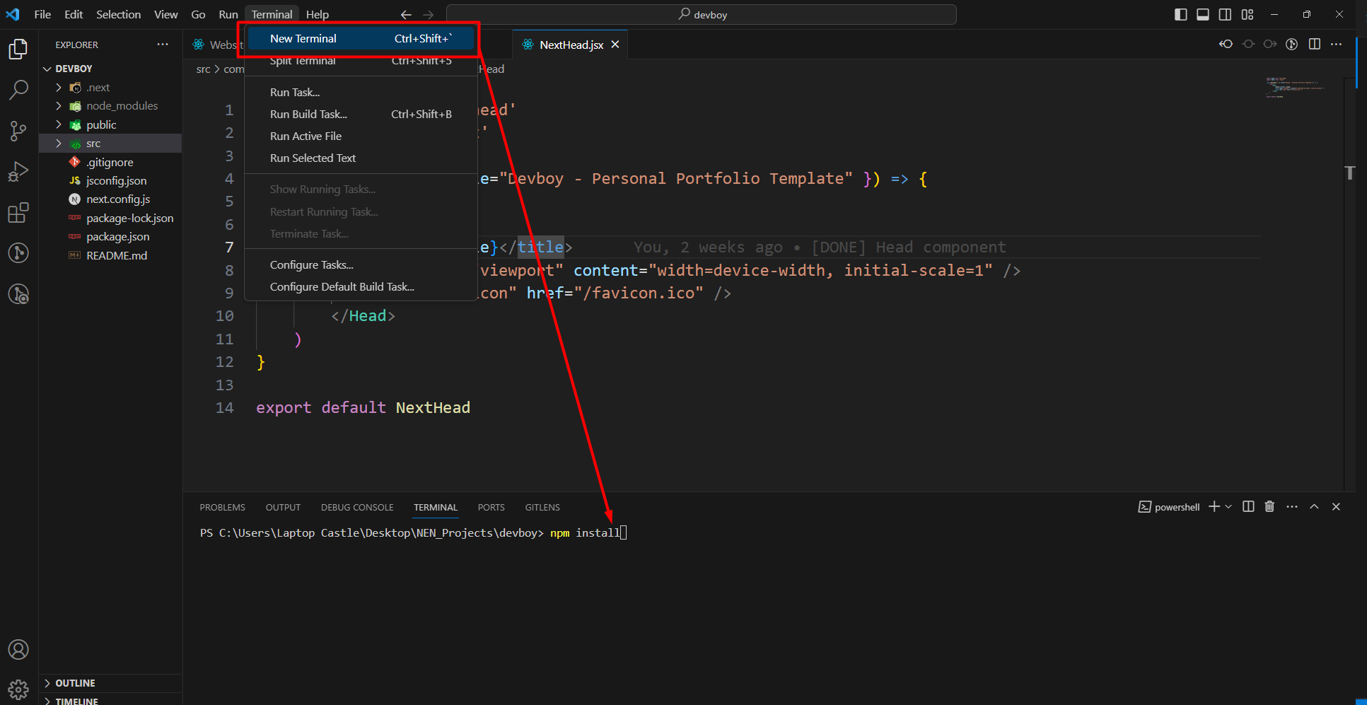 To change your Site title and Favicon open the Devboy in your editor and go to the location by following screenshot which are given bellow.